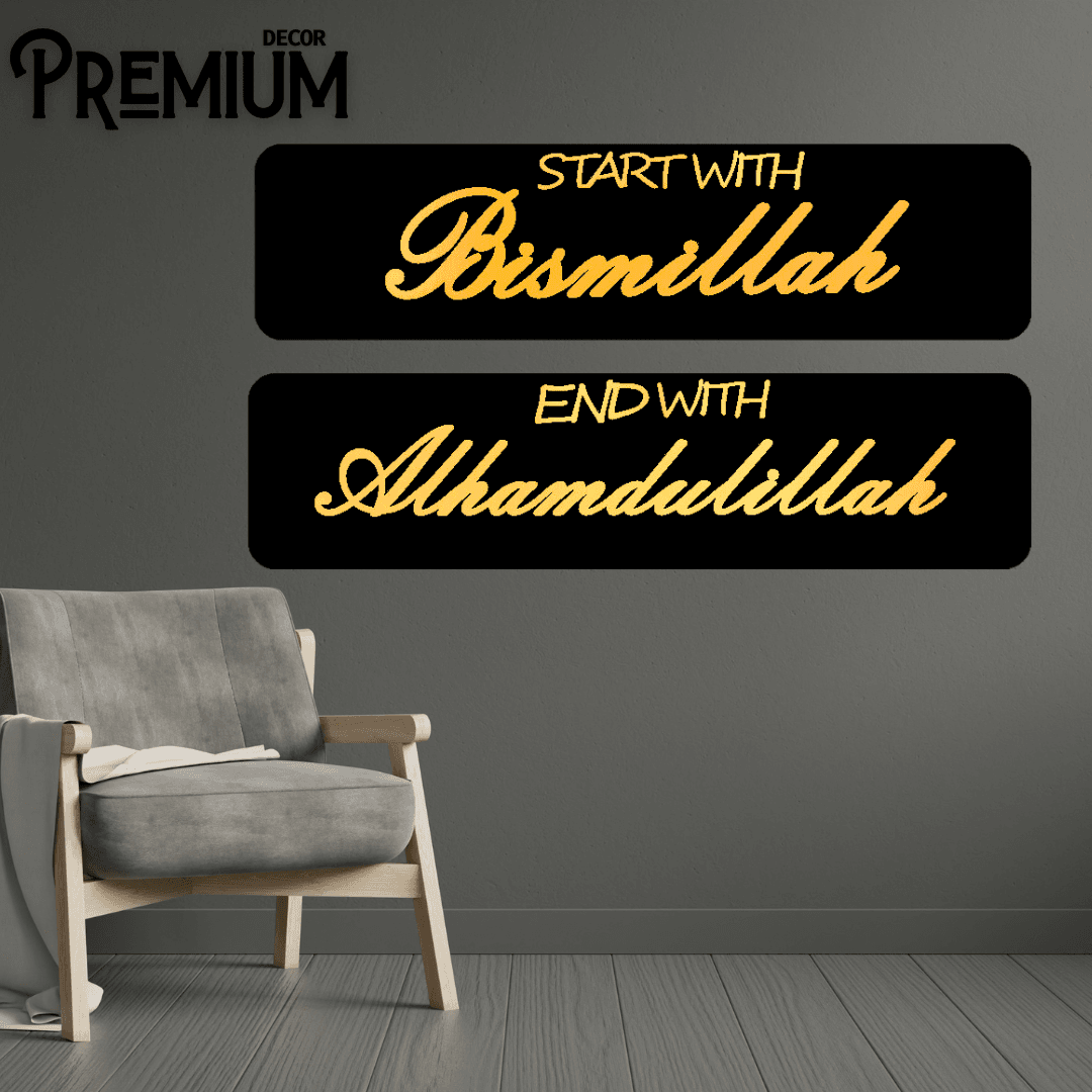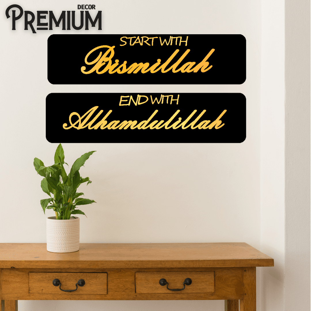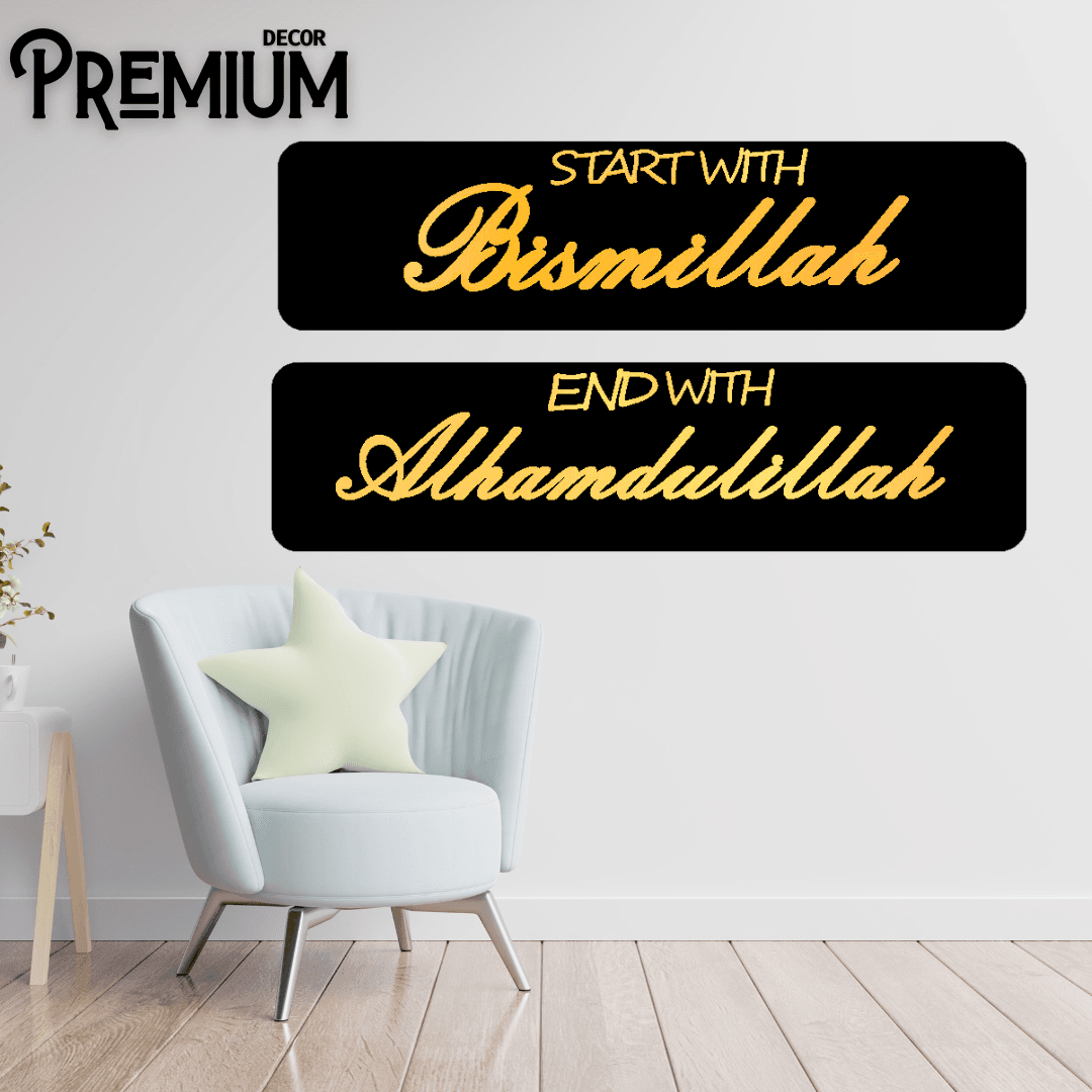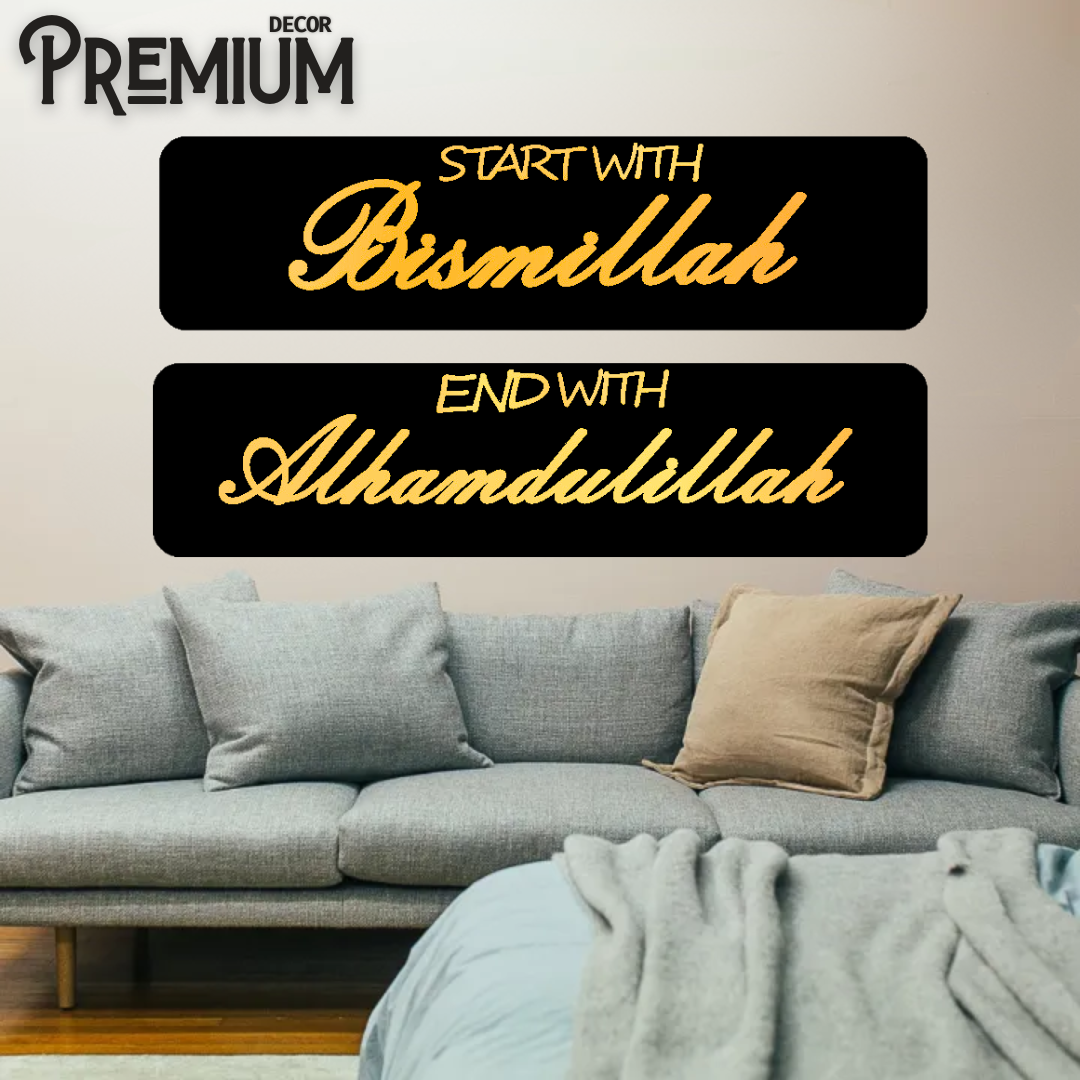 Acrylic Mirror Golden Start With Bismillah And With Alhamdulillah Wall Decor