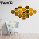 Transform any room with our acrylic mirror hexagone golden wall decor. Available in two distinct sizes, small pieces measure each piece 4×4 inches, while larger options are each piece 6×6 inches. The elegant golden finish adds a touch of sophistication, making it a striking addition to your home.
