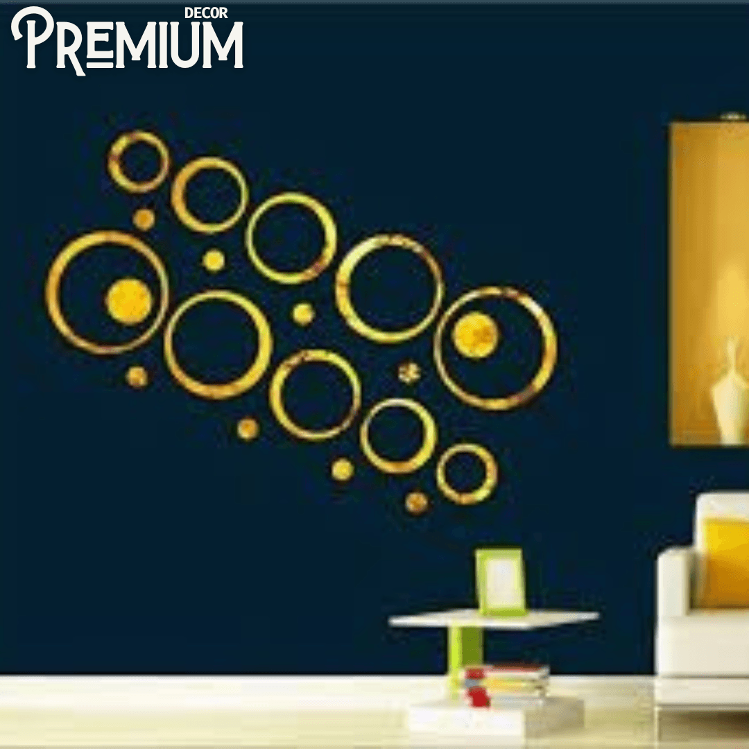 Acrylic Mirror Ring Golden Wall Decor Set of (20)