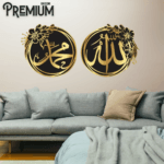 Featuring sacred verses and names in stunning Arabic script, crafted in both wooden and acrylic options — perfect for your living room, prayer area, or office.