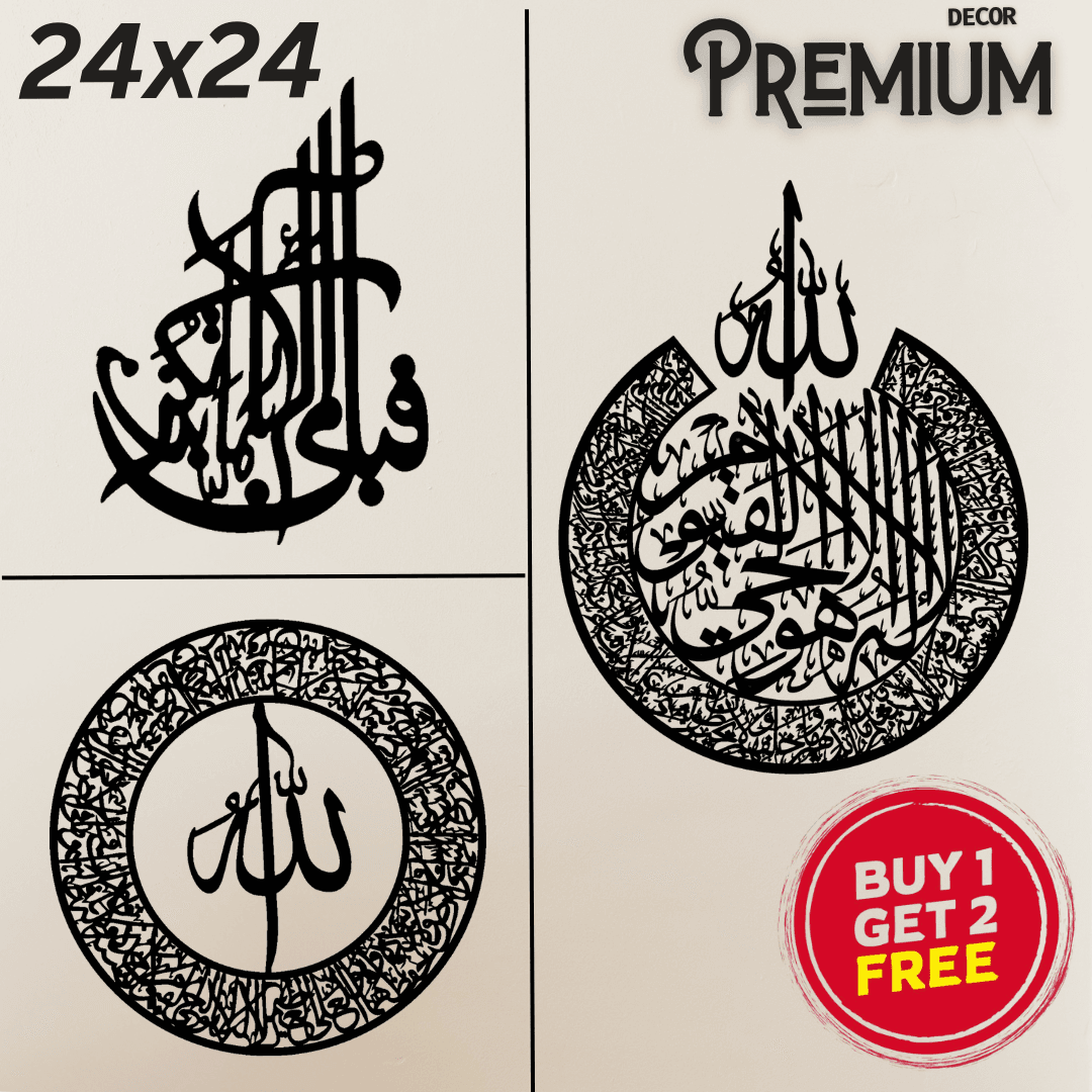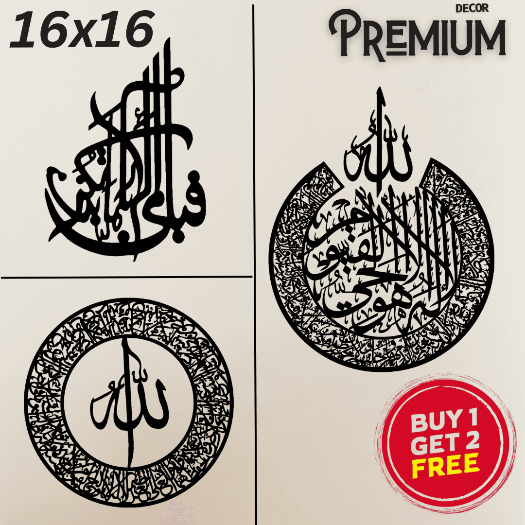 Add a touch of sophistication to your home with our elegant calligraphy wooden wall decor. Available in two sizes—small at 16×16 inches and large at 24×24 inches—these stunning pieces are perfect for enhancing your walls. Whether you choose to display them in your living room, bedroom, or office, the intricate calligraphy adds a unique flair. Take advantage of our Buy One Get One Free offer and elevate your decor today!