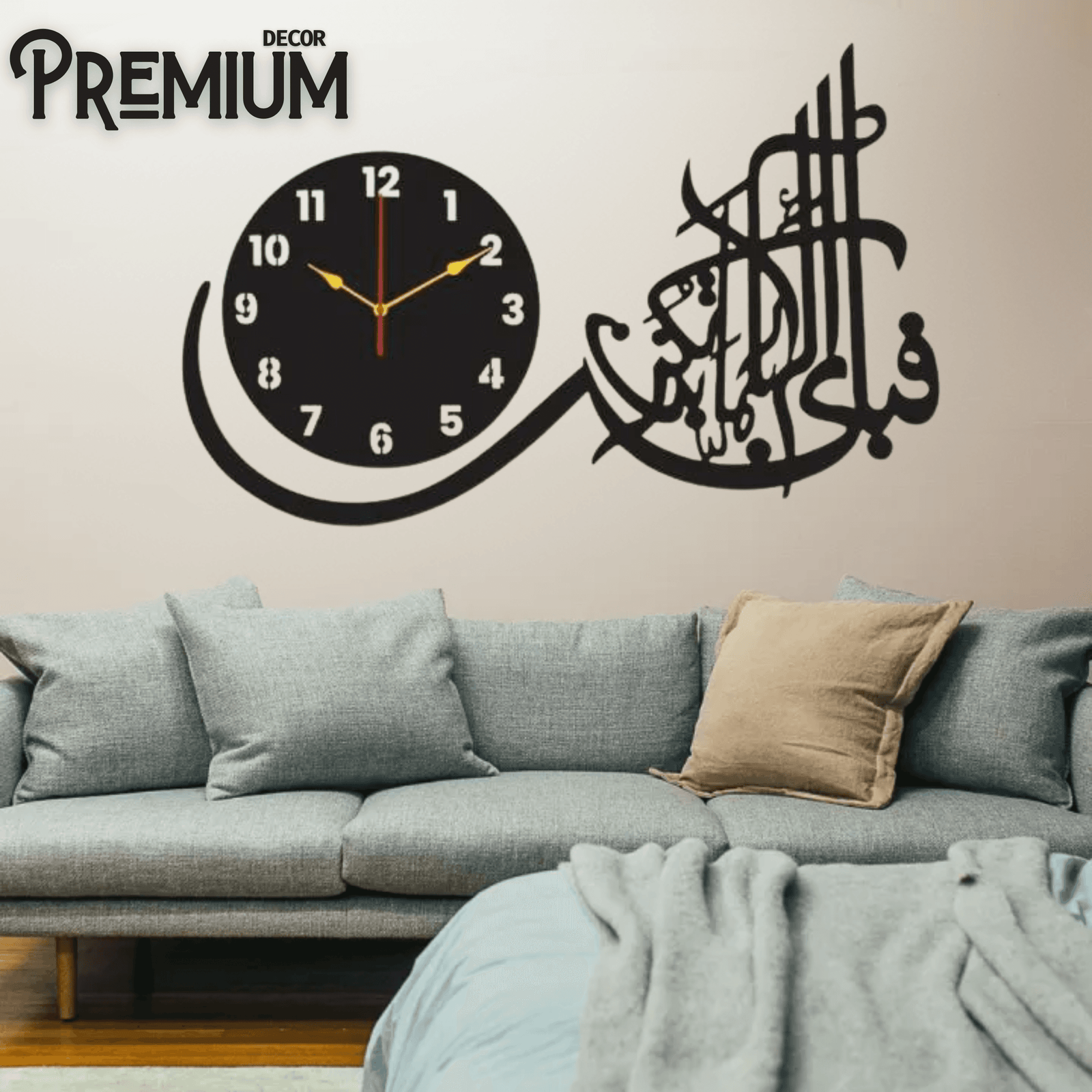 Featuring sacred verses and names in stunning Arabic script, crafted in both wooden and acrylic options — perfect for your living room, prayer area, or office.🕰 Luxury Wall Clocks