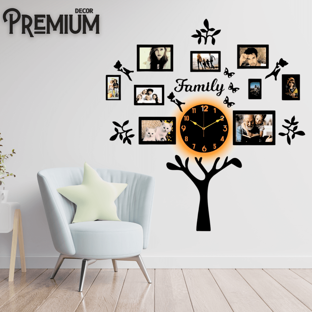 Family Tree Wooden Wall Clock ( With Light )