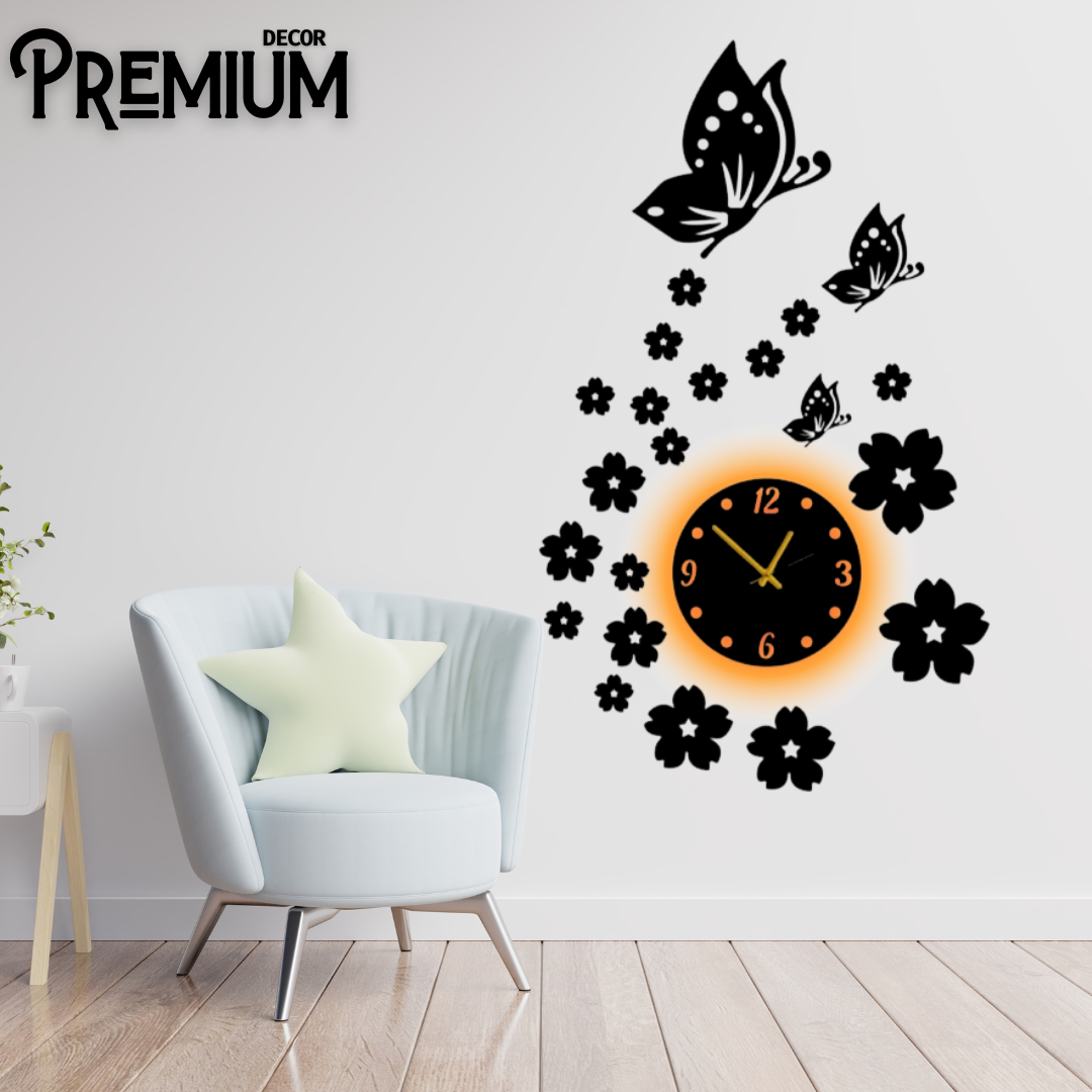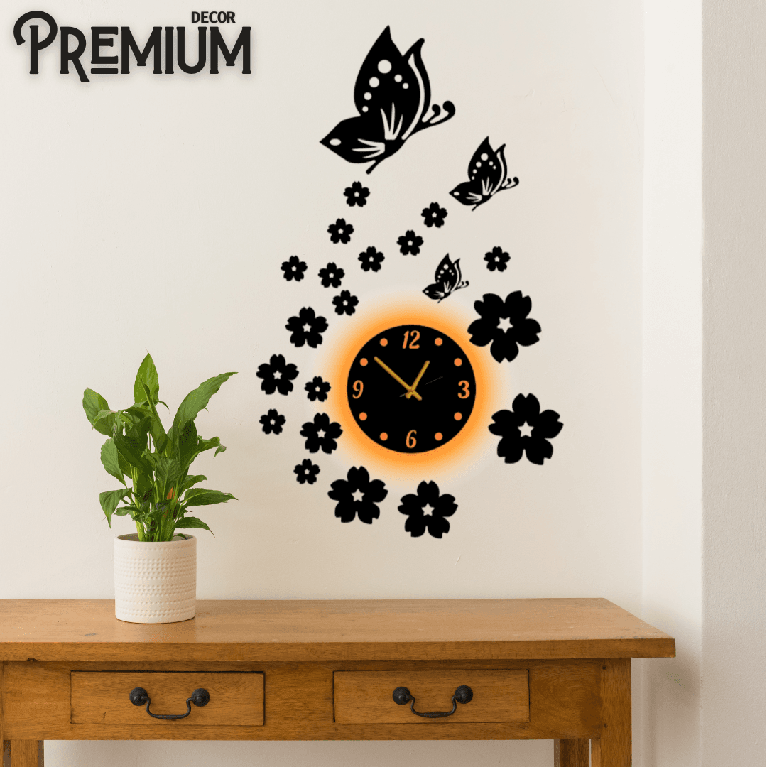 Flower New Wooden Wall Clock ( With Light )