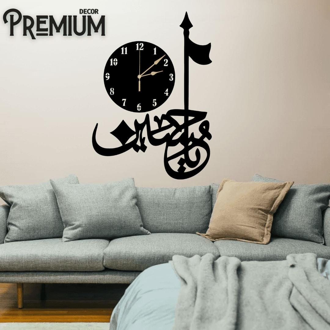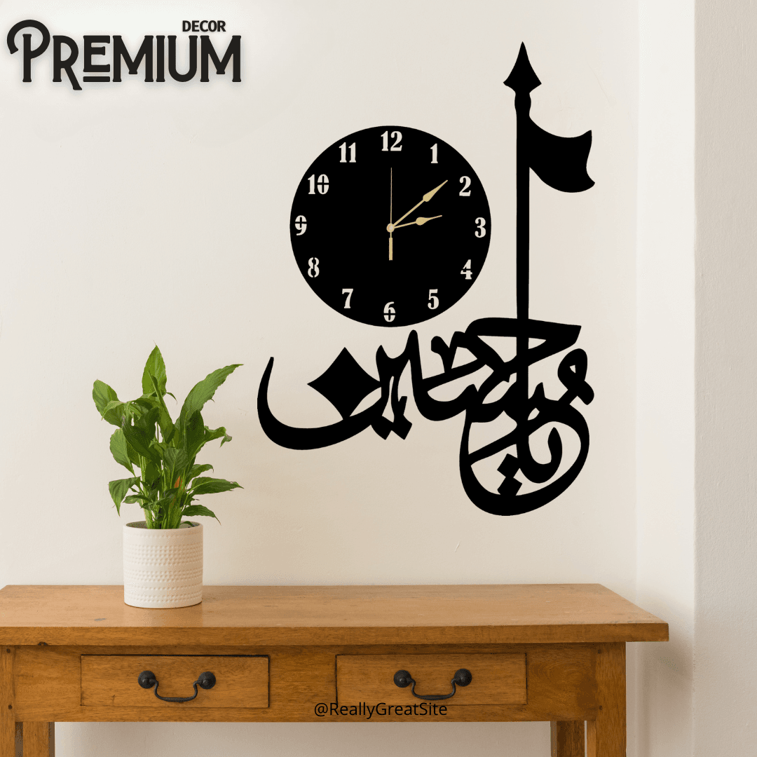 The Salam Ya Hussain new Islamic wooden wall clock is beautifully crafted, available in two sizes: a small 20 inch and a large 30 inch. This exquisite piece not only showcases intricate designs but also serves as a constant reminder of devotion.
