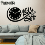 Functional meets spiritual — our exclusive clock designs combine minimalist beauty with Islamic artistry, available in wood or high-gloss acrylic.