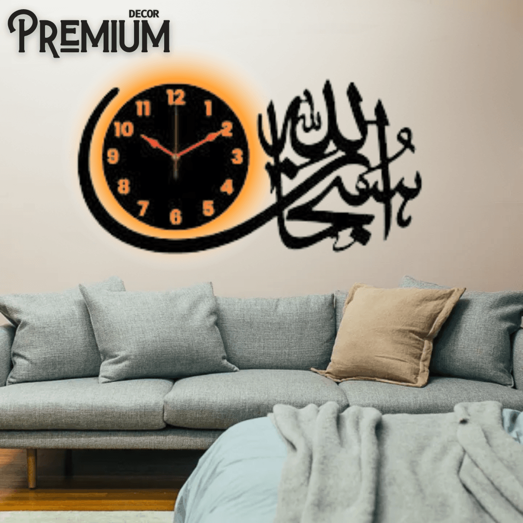 Makaha Islamic Wooden Wall Clock ( With Light )