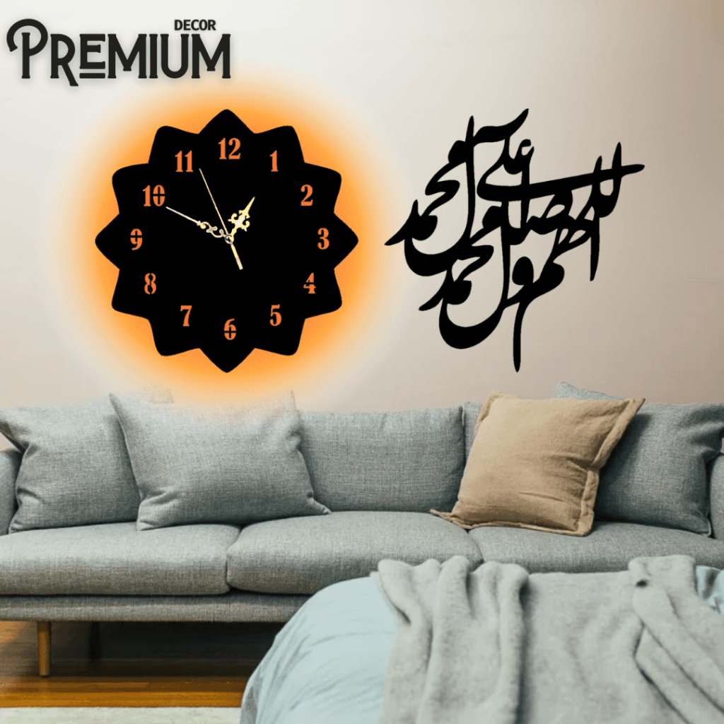 Featuring sacred verses and names in stunning Arabic script, crafted in both wooden and acrylic options — perfect for your living room, prayer area, or office.🕰 Luxury Wall Clocks